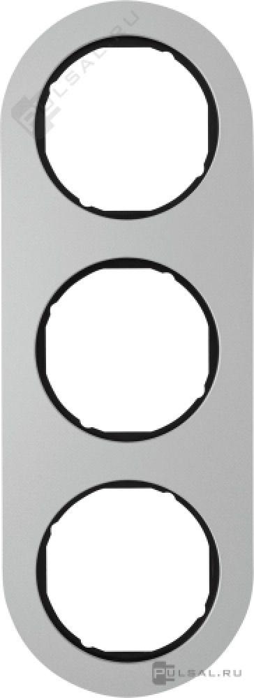 Рамка R.Classic, 3 поста, цвет - алюминий, черный глянцевый, металл